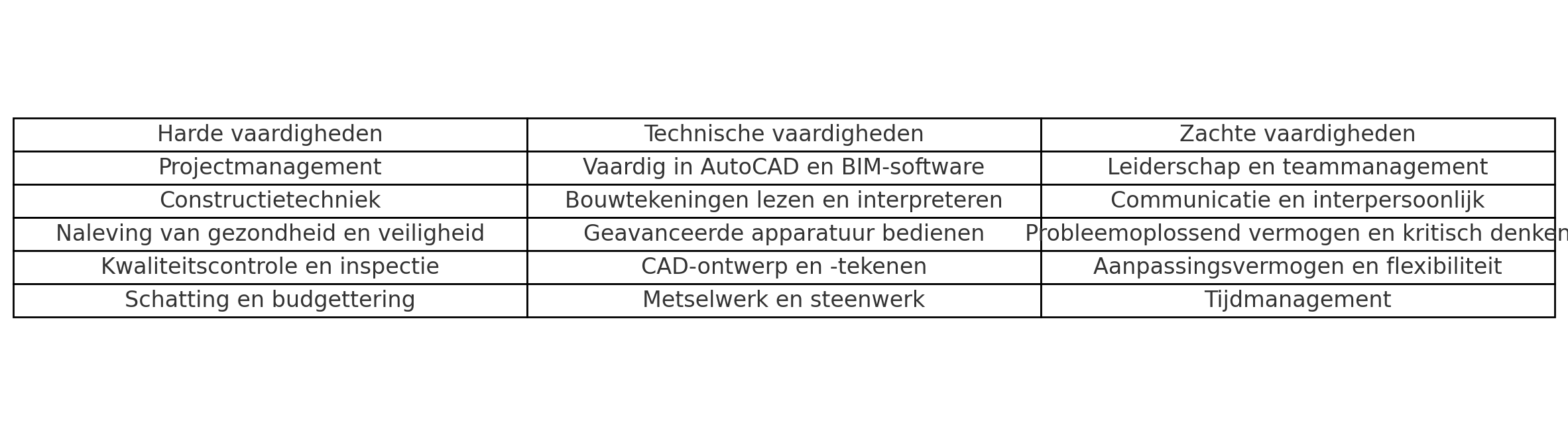 Leg de basis met cruciale vaardigheden voor een bouw-cv