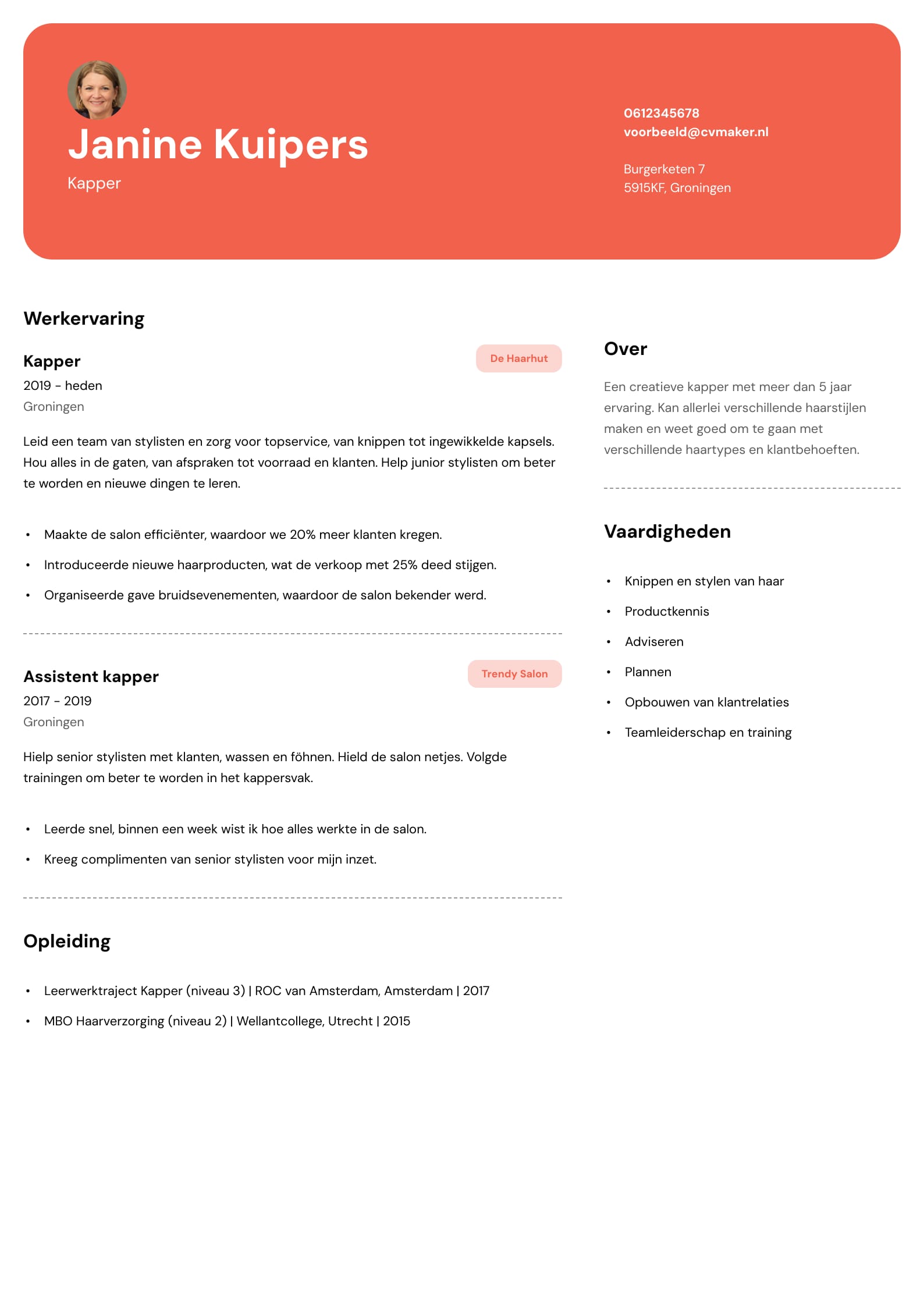 Cv voorbeeld - Kapper