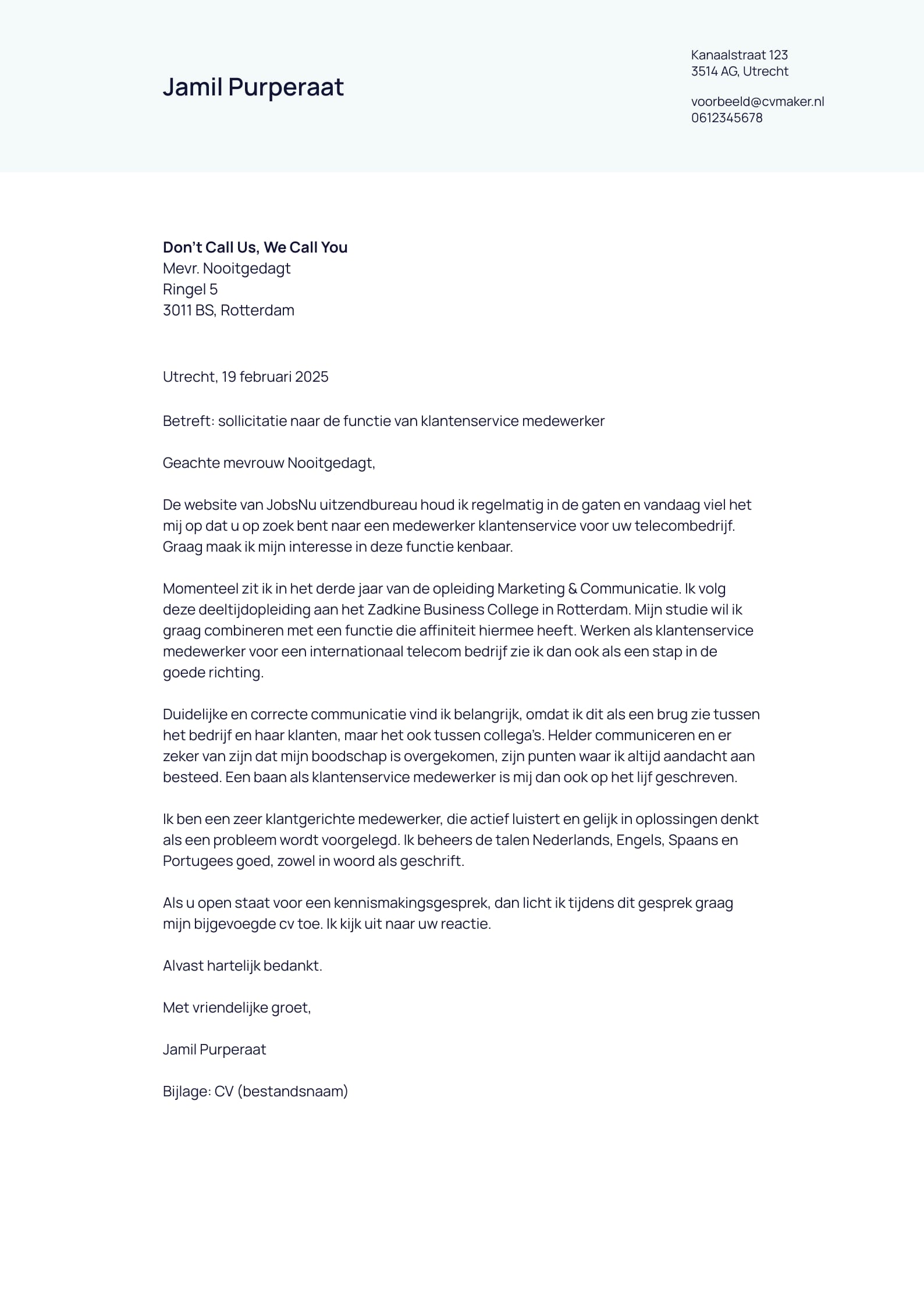 Download dit korte motivatiebrief voorbeeld voor de klantenservice